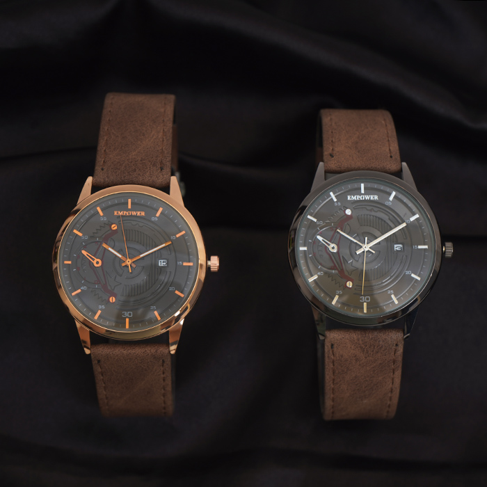 ساعت مچی قهوه ای صفحه مشکی(طرح کمان) empower مدل EM20