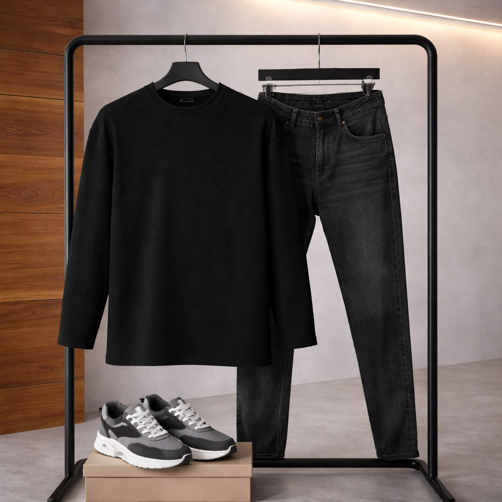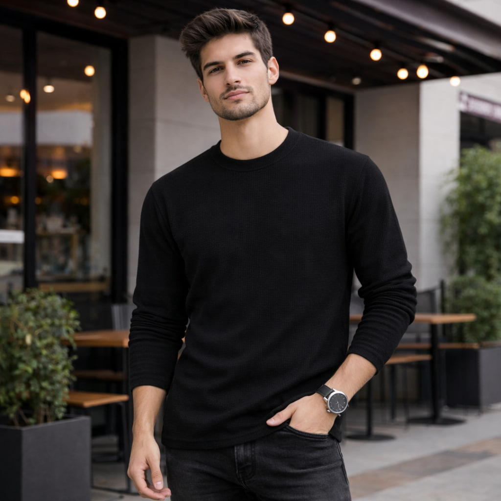 بلوز مردانه آستین بلند مشکی مدل Atra