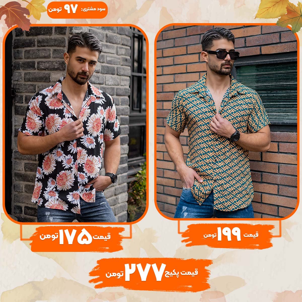 پیراهن مردانه هاوایی طرح گل سفید مدل U12پیراهن هاوایی طرح فندی زرد مردانه مدل F82