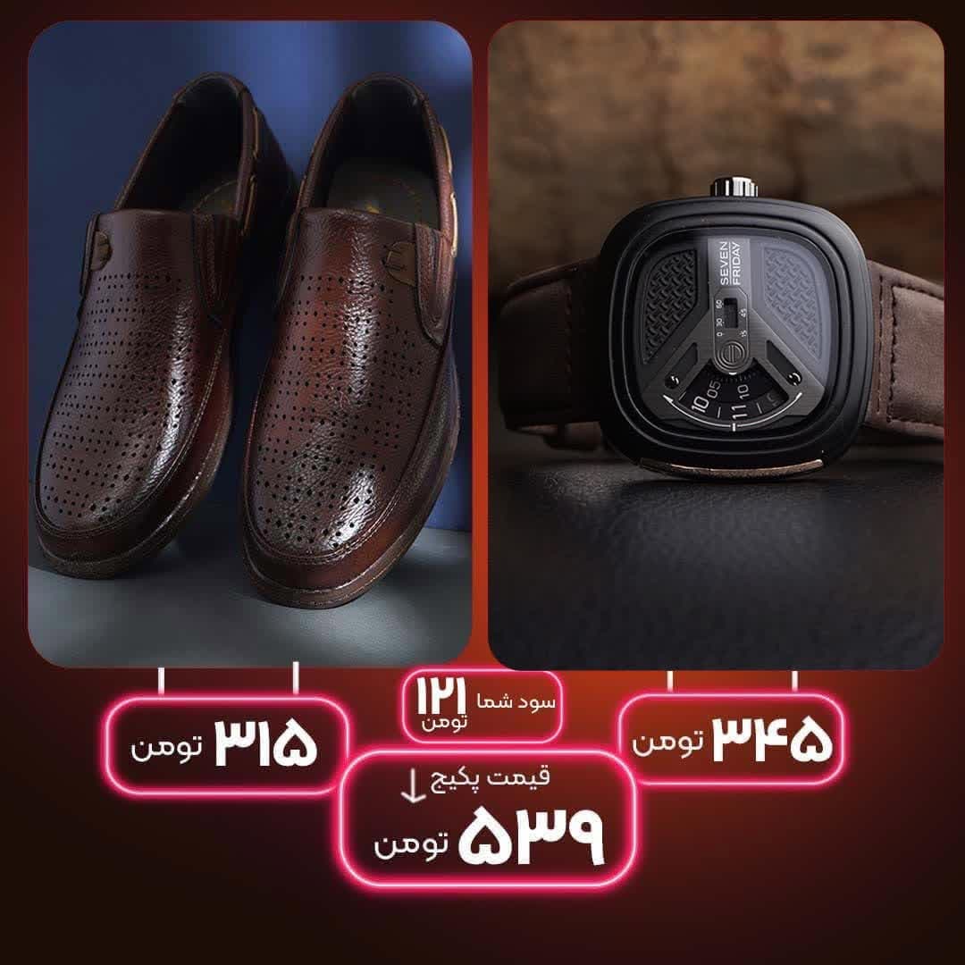 پکیج ساعت sevenfriday قهوه ای صفحه مشکی مدل richardکفش کالج مردانه قهوه ای مدل Ariano