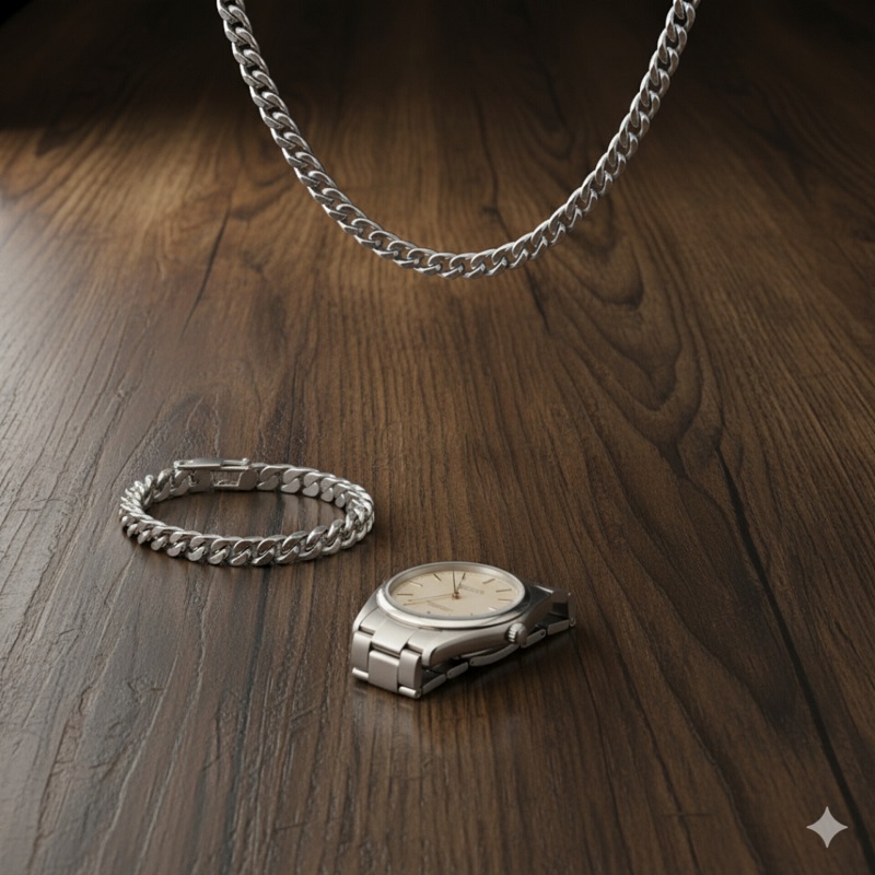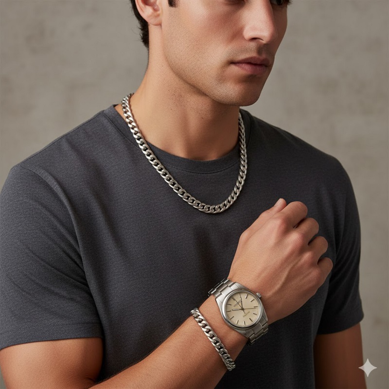 طول زنجیر گردنبند: 54cm | طول دستبند :21cm