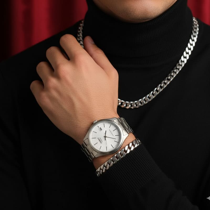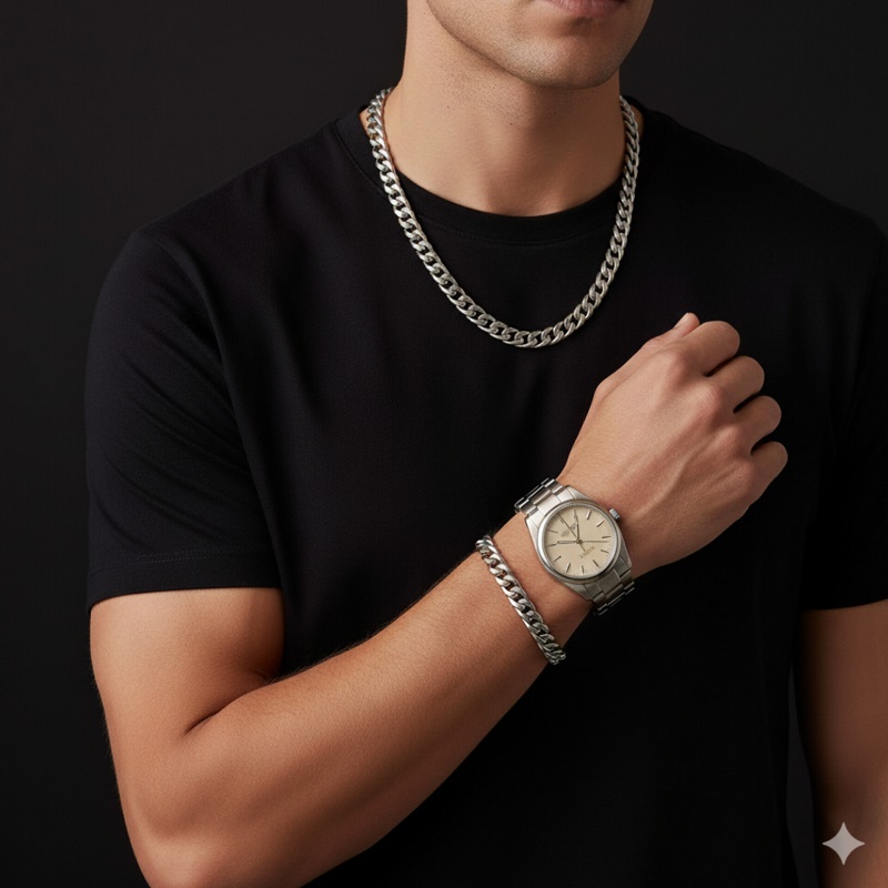 نیمست کارتیر نقرهای +ساعت رولکس مدل Oyster