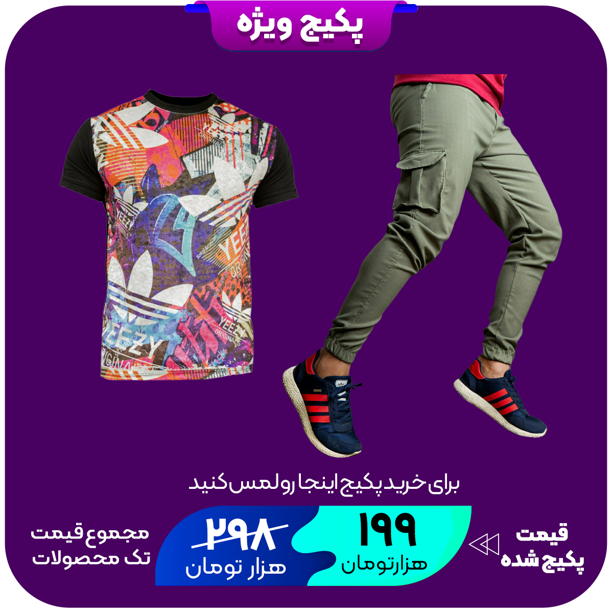 پکیج تیشرت مخمل مردانه آدیداس سفیدمدل L103شلوار اسلش سبز مردانه مدل KOMBO