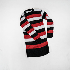 تونیک بافت زنانه راه راه قرمزمشکی مدل kareno