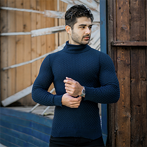 پلیور یقه اسکی مردانه سرمه ای مدل Oktav