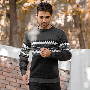 پلیور ژاکارد ذغالی مشکی مردانه مدلSami