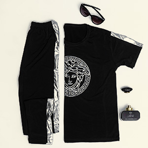 ست تیشرت و شلوار طرح ورساچه نقره ای مدل Lili