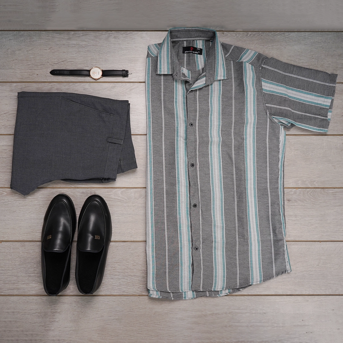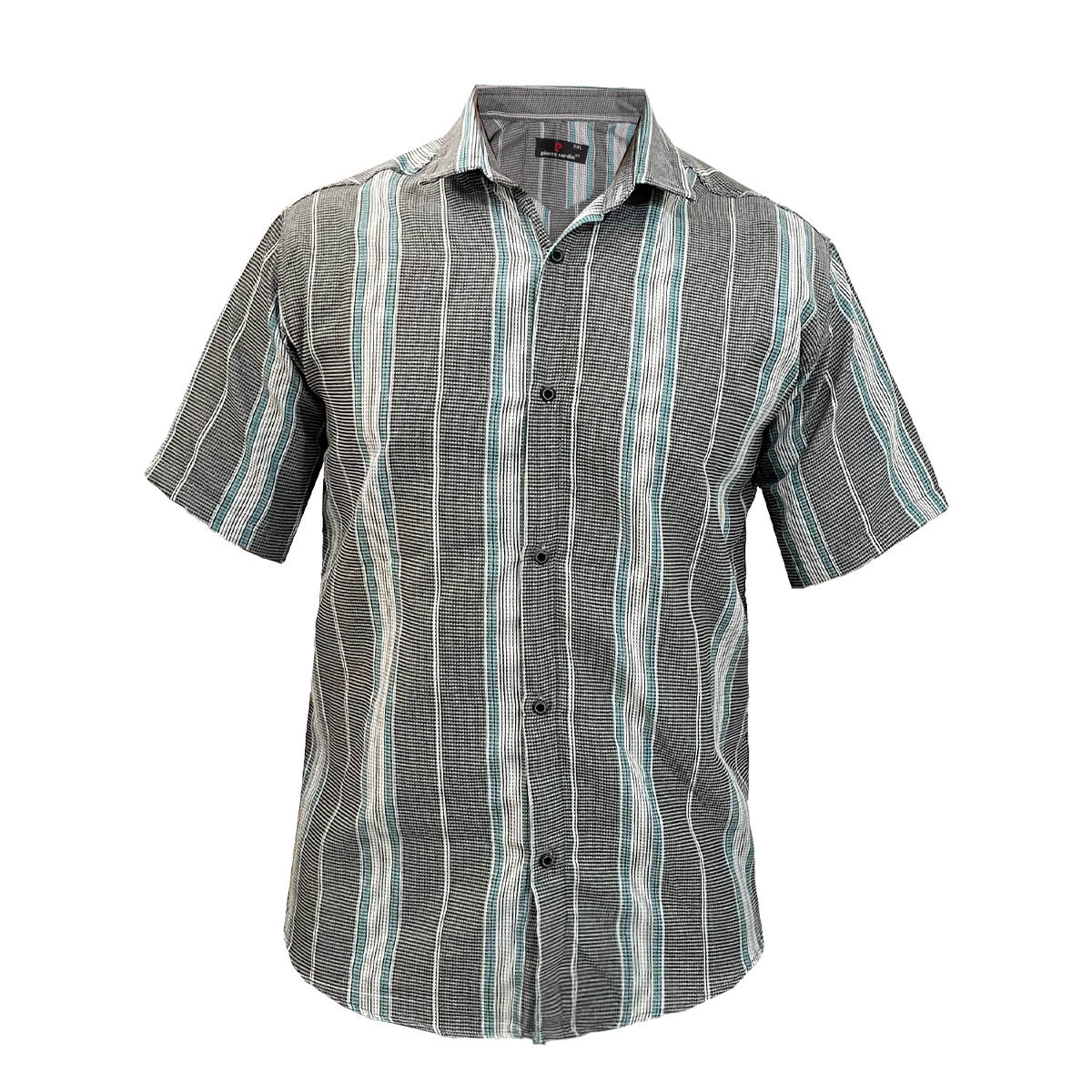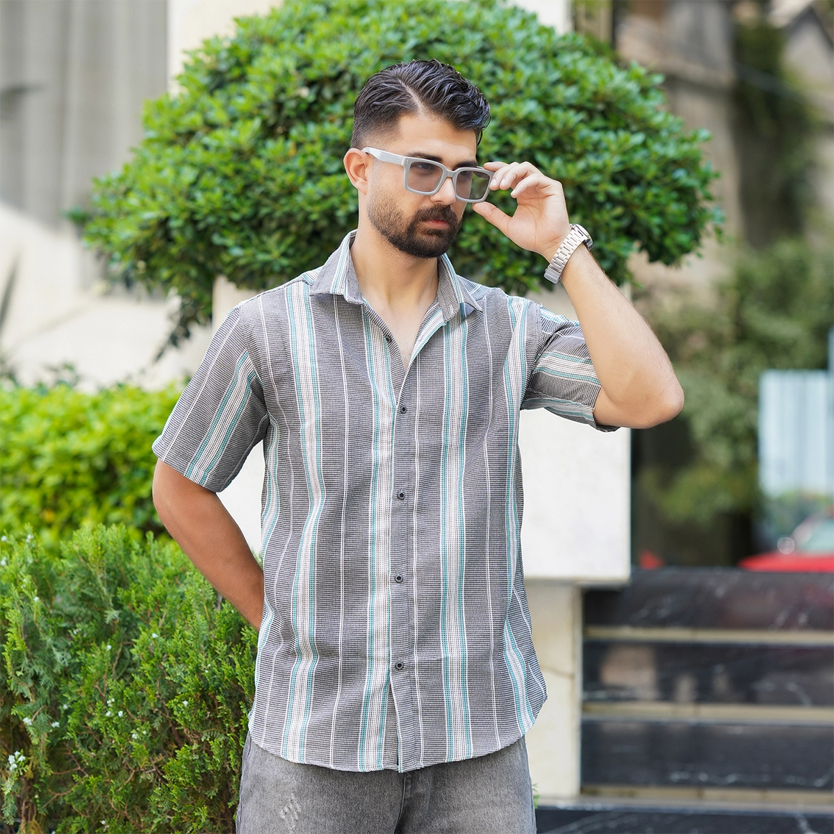 پیراهن راه راه طوسی سبز طرح کنفی مردانه مدل Dara