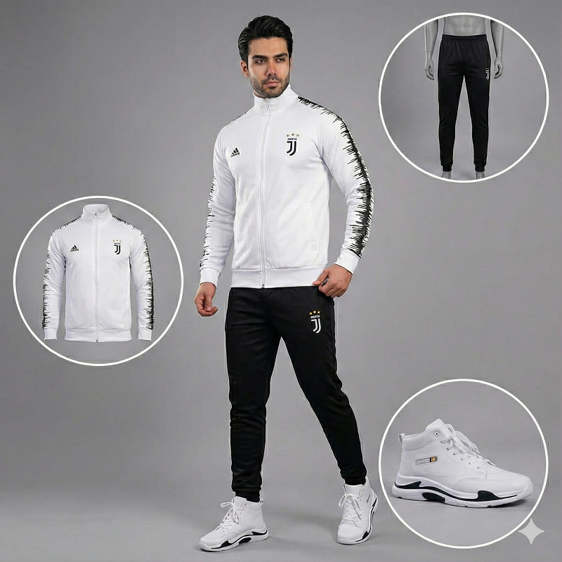 پکیج ست سوییشرت شلوار یوونتوس مردانه مدل R77 + کفش ساقدار مردانه EMTO