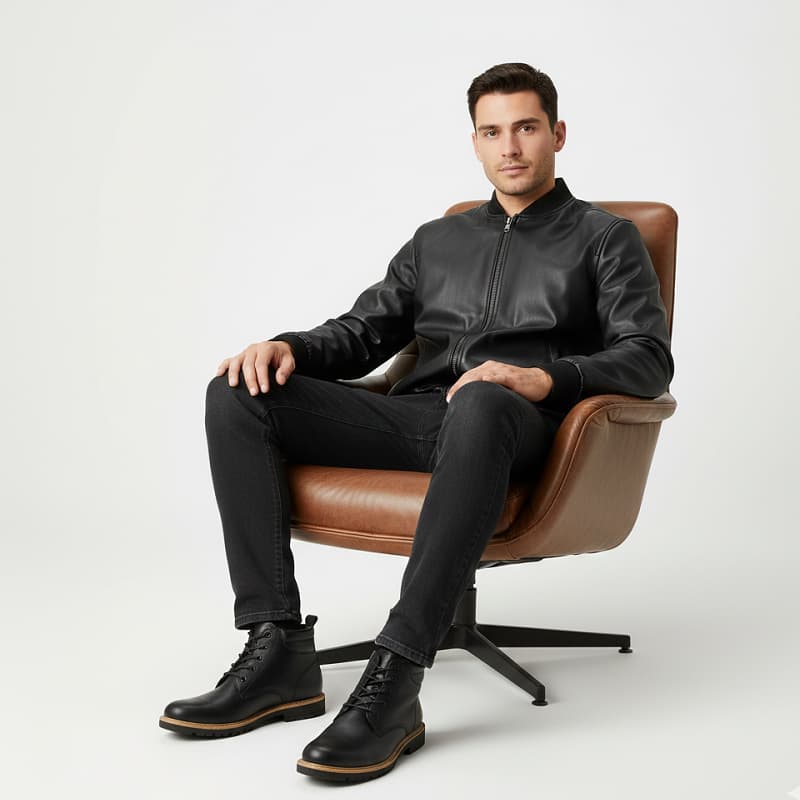 پکیج کاپشن چرم مردانه مدل Artim نیم بوت cat مردانه مدلRivari