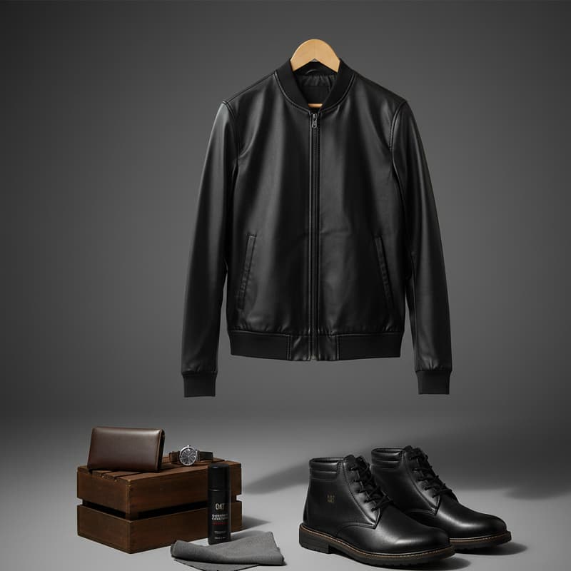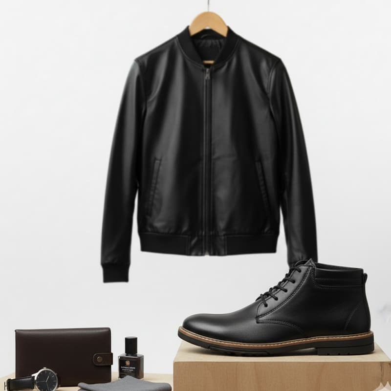 پکیج کاپشن چرم مردانه مدل Artim + نیم بوت cat مردانه مدلRivari