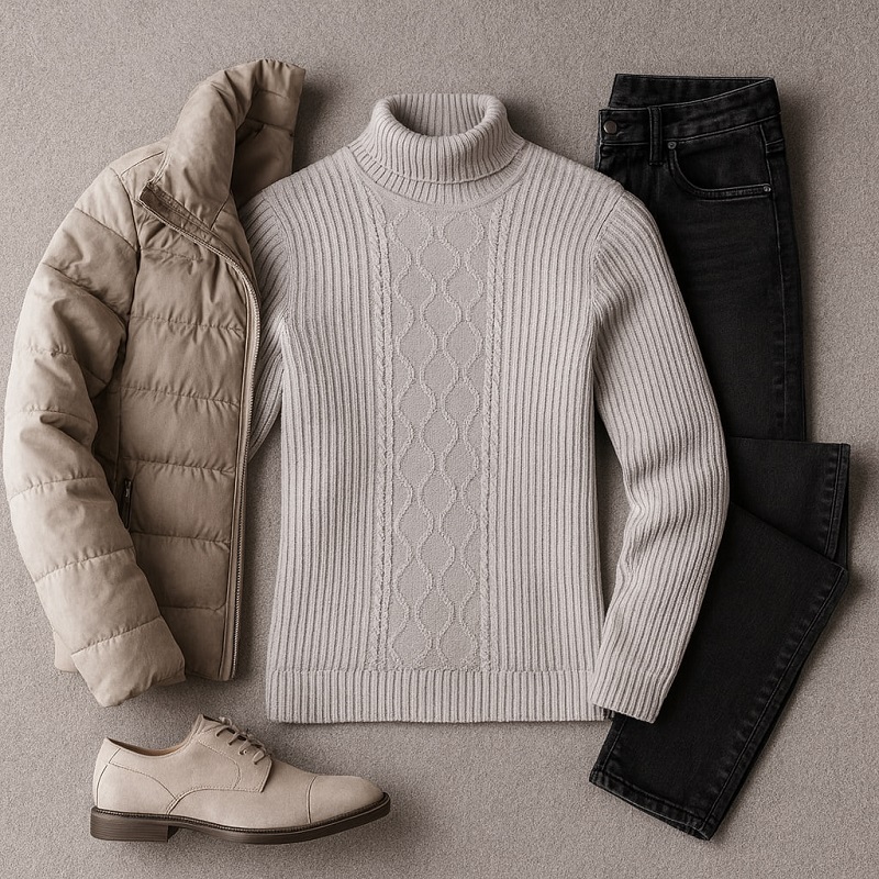 پلیوربافت مردانه سفید یقه اسکی مدل Hakan