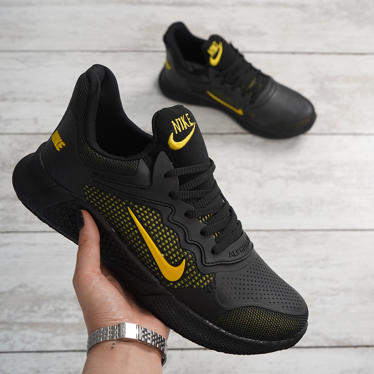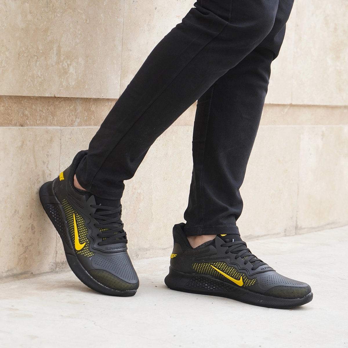 کفش ورزشی نایک مردانه مشکی زرد زیره مشکی مدل Alpha