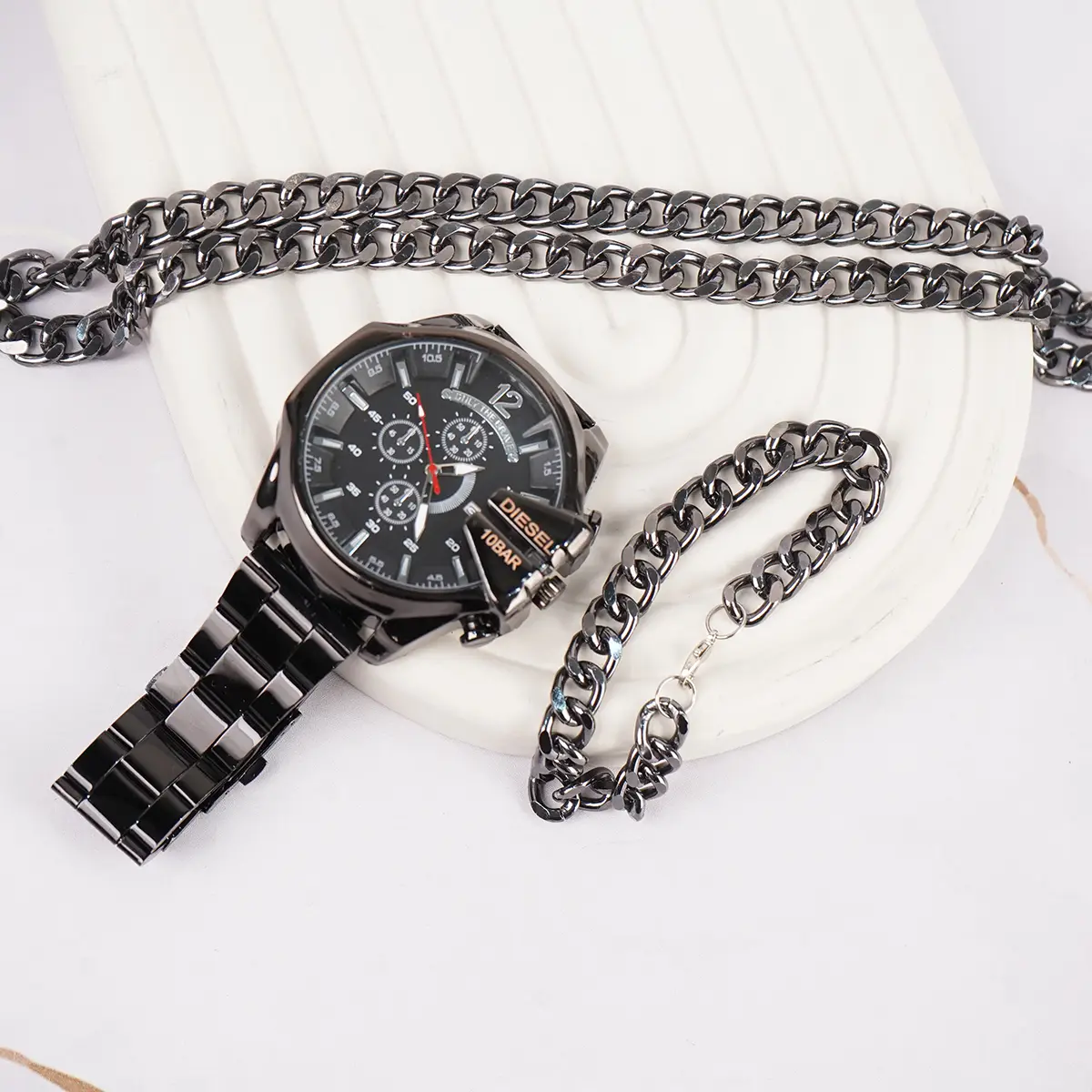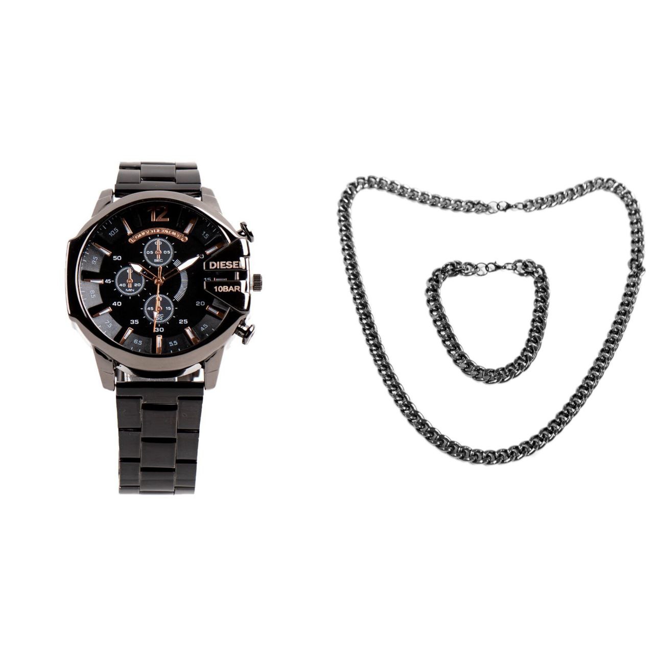ست ساعت مچی مردانه مشکی صفحه مشکی مدل U700 دستبند و گردنبند کارتیه رنگ دودی