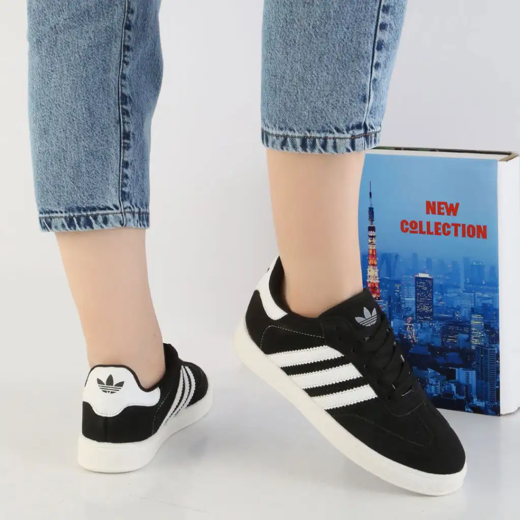 کفش تخت زنانه آدیداس مشکی سفید مدل Mehrnaz